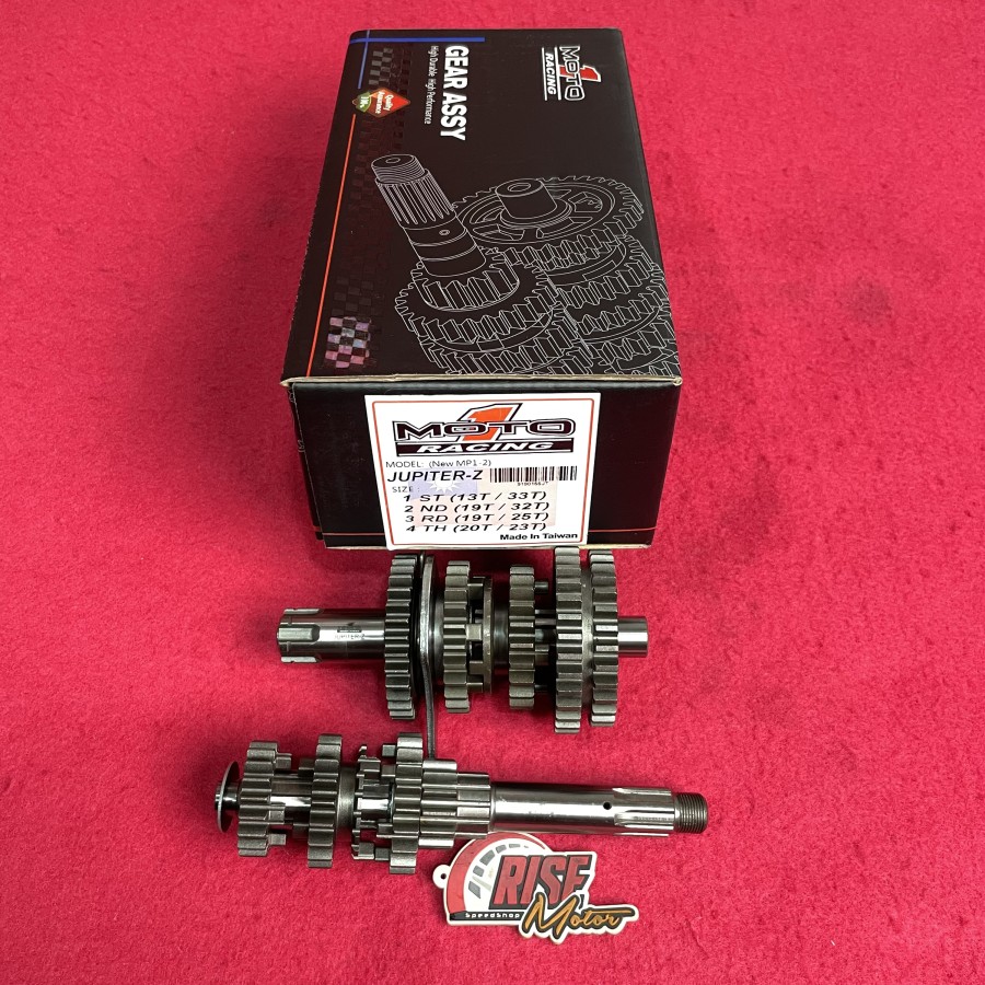 Gear ratio merk Moto 1 type gastract untuk motor Jupiter Z ukuran : gigi 1 : 13.33 gigi 2 : 19.32 gigi 3 : 19.25 gigi 4 : 20.23